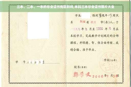 一、本科学校的一本、二本毕业证书没有一点区别,而三本毕业证书是有区别的。