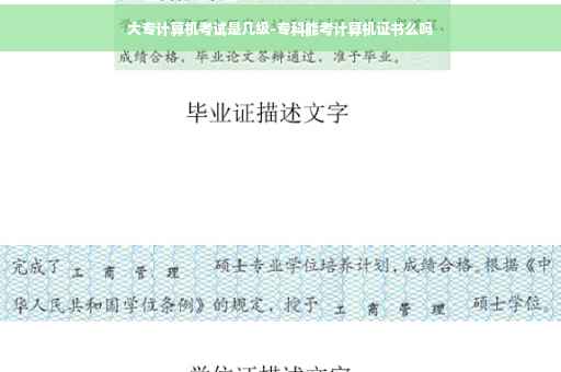 1、大专计算机考试是二级或三级都可以。 2、一般情况如果你学的不是编程类的计算机专业,偏文科的一般情况只要计算机二级证书就行,三级因为分不同科目,选择一个通过就能得证书,所以一般的专业是不需要三级证的。 3、全国计算机等级考试设四个等级。它不以评价教学为目的,考核内容不是按照学校要求设定,而是根据社会不同部门应用计算机的不同程度和需要、国内计算机技术的发展情况以及中国计算机教育、教学和普及的现状而确定的;它以应用能力为主,划分等级,分别考核,为人员择业、人才流动提供其计算机应用知识与能力水平的证明。 4、二级定位为程序员,考核内容包括公共基础知识和程序设计。所有科目对基础知识作统一要求,使用统一的公共基础知识考试大纲和教程。二级公共基础知识在各科考试选择题中体现。程序设计部分,主要考查考生对程序设计语言使用和编程调试等基本能力,在选择题和操作题中加以体现。