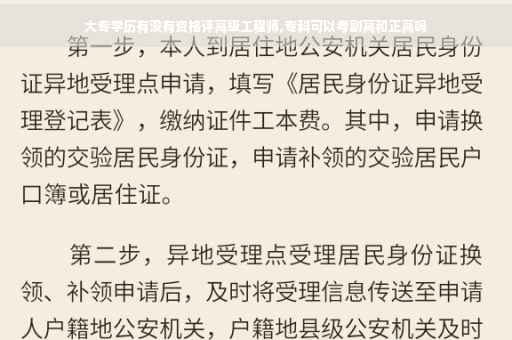 2、大专学历,取得中级职称满7年可申报高级工程师(须修完本专业大学专科主要课程,并取得结业证书)。