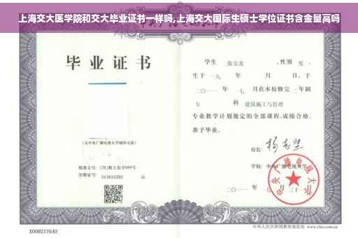 获得上海交通大学国际生的硕士研究生学位证书应该是有部分在国外培训的时间,这可以开阔研究生的视野和在一定程度上提高学术水平,所以毕业后掌握的技能、知识应该要多一些,对寻找工作也会有较大的帮助。含金量高些。