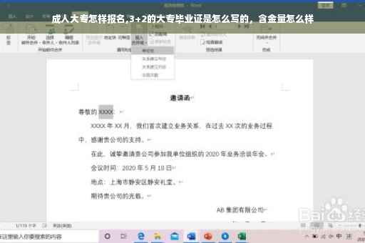 3+2的大专毕业证是成人高考大专毕业证,含金量不如全日制。