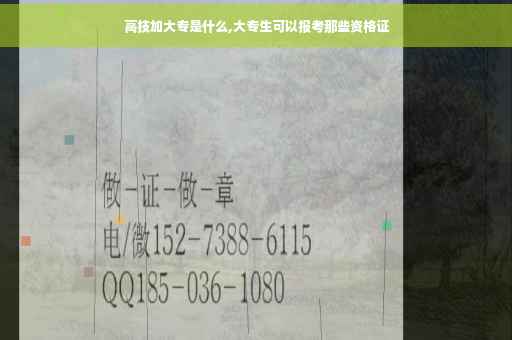 而高技加大专一般是3+2年.也就是说你刚开始在学校学的是技术方面的事.到时你可以拿到这个高级技工的证或职业资格证.到时你还可以拿到一成人大专的毕业证.比如说女生在湖南人文科技学院学高技+大专的幼师专业.那么你可以拿到一个幼师资格证和一个大专毕业证.再比如说男生选的机电一体化的专业.那么你就可以拿到一个高级技工证和大专毕业证.