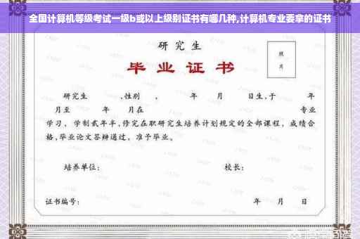 全国计算机等级考试一级b或以上级别证书有二级vb、二级c语言、二级C++、二级Java、二级WEB程序设计、二级VFP、三级PC技术、三级信息管理技术、三级数据库技术、三级网络技术等。 全国计算机等级考试(NationalComputerRankExamination,以下简称NCRE),是经原国家教育委员会(现教育部)批准,由教育部考试中心主办,面向社会,用于考查非计算机专业应试人员计算机应用知识与技能的全国性计算机水平考试体系。