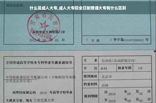 区别如下:(1)录取分数区别:通过普通高考进去的,需要更高的高考分数,就读的是普通大专;通过成人高考进去的,一般所需分数比较低,就读的是成人大专。(2)证书区别:普通大专证书标注:****普通大专,成人大专标注****成人大专。(3)求职时候的区别:普通大专证跟成人大专证区别在于第一次求职,如果你是第一次出来工作的,一般企业会看重求职者的毕业证书,那无疑普通大专比成人大专毕业出来的人更容易找工作。但如果你是已经有工作经历的,那普通大专证跟成人大专证的区别就不是很大。只要你的成人大专证书是正规学院的,国家电子注册的,那就是全国通用的。扩展资料专科生源主要来自全国普通高考,即通过每年6月份的普通高考录取入学,读完专科专业所有课程,经考试或考查成绩合格而取得大学专科学历。全日制统招专科生毕业时有《普通高等学校毕业证书》、《全国普通高等学校本专科毕业生就业报到证》和《全国普通高等学校毕业生就业协议书》。高职和高专都是专科层次的普通高等学校。高职学校名称是“××职业技术学院”、“××职业学院”和“职业大学”。高专学校名称是“××高等专科学校”或者"专科学校“。参考资料:百度百科-成人大专百度百科-专科