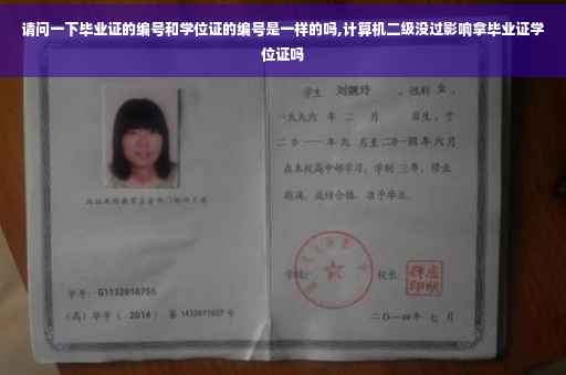 毕业证的编号和学位证的编号是不一样的,因为在大学读书期间只要是能够按时完成所修课程的学生都可以拿到毕业证。