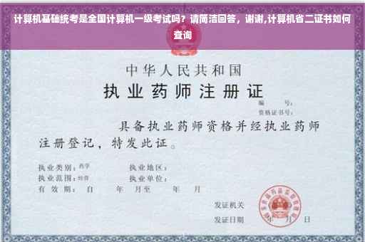 所有大学里面都有这门课是作为公共基础课开设的,一般在大一开,如果你考的是学校里的期末考试,那么只计算毕业学分,不会给你特别颁发证书的。另外还有一种是高等学校非计算机专业计算机水平考试(CCT),一般为区别全国计算机等级考试,称之为“省考”。是省级教育考试院组织的,等级及科目的设置由省教育厅决定,绝大部分省份将计算机应用基础列为一级。这个通过后有证书,但是社会上一般不怎么承认。看你考的是哪一种了。计算机二级统一成绩查询入口为教育部考试中心,先登陆教育部考试中心查询系统打开教育部考试中心成绩查询系统:选择自己考试所在地区,考试的类别为国家计算机二级考试, 输入相应的信息你的姓名身份证号等即可查询自己的考试结果了。