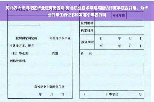 合并后尽管毕业证是由廊坊师范学院来颁发,但毕业证书仍然注明毕业于河北职业技术学院,落款也是河北职业技术学院,直到原河北职业技术学院的学生完全毕业为止,颁发的证书和合并之前没有区别,仍然是大专毕业证。河北职业技术学院的毕业证国家当然承认,就像师院以前是由廊坊师专,廊坊教育学院,廊坊师范学校合并的一样,所有的毕业生现在都可以说是廊坊师范学院毕业的。