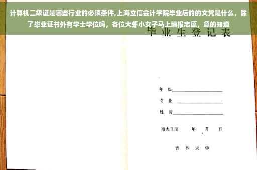 用到二级的也就是会计、计算机、通信类的、信息类的;但是相对来说这个证又太低。如果是为了给自己加分请参考下面的例子。1:综合测评加分,而综合测评与奖学金挂钩。2:保研加分 3:评各类其他证书,如三好学生等 4:自考免考计算机 对于即将找工作的用处如下 1:很多单位不做要求的,但是你就业的时候有这个证书,他们会更倾向你 2:到上落户口必须要过5个计算机水平考试,计算机等级是其中之一,其他的考试是: 参照《上海市教育委员会、上海市发展计划委员会、上海市人事局关于印发〈上海市高等学校毕业生就业办公室关于2003年上海市引进非上海生源高校毕业生进沪就业落户工作的规定〉的通知》(沪教委学[2003]13号文件)的精神,计算机应用能力水平相关要求摘要如下: 申请进沪就业的非上海生源毕业生计算机应用能力须获得下列证书之一: 1. 全国计算机等级考试证书(文科专业学生为一级,理工科专业学生为二级); 2. 全国计算机应用技术证书(文科专业学生为“文字处理”模块,理工科专业学生为“电子表格”或“C语言”模块); 3. 上海高校非计算机专业学生计算机应用知识和应用能力考试证书(文科专业学生为一级,理工科专业学生为二级); 4. 上海市计算机应用能力考核证书(文科专业学生为“办公自动化”,理工科专业学生为“中级”); 5. 其它由学校所在地的省、自治区、直辖市级教育行政部门举办的计算机应用能力水平考试的合格证书。立信会计学院毕业时会有上海立信会计学院的本科毕业证书,