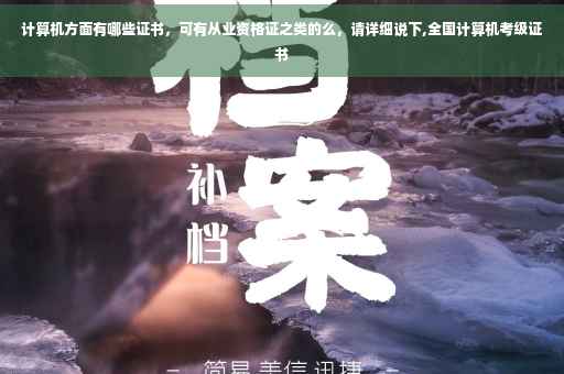 计算机在中国目前有三种从业资格证书,一类是操作证书,由劳动部门颁发,可通过各种社会培训机构参训后报名参加考试,如一级、二级和普通操作证书;二类是专业技术证书,由工信部组织考试,各省颁发证书,直接网上报名参加考试,分初级、中级、高级,如程序员、系统分析师、信息系统项目管理师、构架师等证书;三类是由专业信息公司组织专门的实用技术考试,颁发专业从业资格证书,如西门子交换机维护工程师、ORACLE数据库维护工程师、华为路由器售后服务工程师等证书。