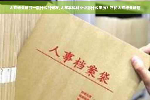 大专毕业证一般一般在每年的6月份发放,各个学校时间可能会不一样,但差别不会很大。专科一般指大学专科(高职高专)教育,是我国高等教育的重要组成部分,是大学的学历层次之一。区别于本科,大学专科教育主要由高职(高等职业技术学院)和高专(高等专科学校)承担,部分本科高校亦开设有专科。专科层次不颁发学位,毕业颁发专科毕业证书。高职和高专都属于普通高等教育的专科层次,前者偏技术,后者偏理论,侧重点不同,无本质差别。两者培养目标是统一的,在完成中等教育的基础上培养出一批具有大学知识,又有一定专业技术和技能的高级技术人员,其知识的讲授是以够用为度、实用为本,两者招生是并轨的。
