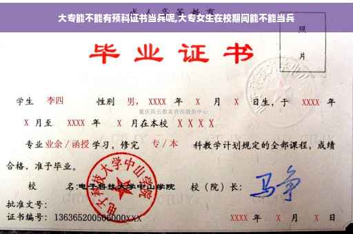 到此,以上就是小编对于大专能不能有预科证书当兵的问题就介绍到这了,希望介绍关于大专能不能有预科证书当兵的4点解答对大家有用。