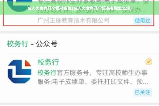 大家好,关于成人大专有几个证书名称的问题,于是小编就整理了5个相关介绍成人大专有几个证书名称的解答,让我们一起看看吧。