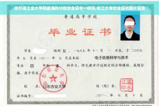 哈尔滨工业大学威海校区的毕业证书与哈工大的毕业证书是一样的。
