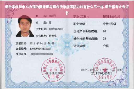 疾控中心办的是烟台市的健康证传染病医院是芝罘区的证件,效果都一样,但是建议你在烟台市疾控中心办理,因为传染病办理的到时候拿证要去西南河一个区疾控中心拿比较麻烦还不如在市疾控查体办证一条龙