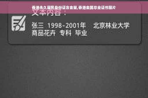 然而,香港永久居民身份证并不含有实际的金属或贵金属,所以从字面上来说,它没有含金量。它的价值在于它所代表的身份和权益,而不是其物质价值。