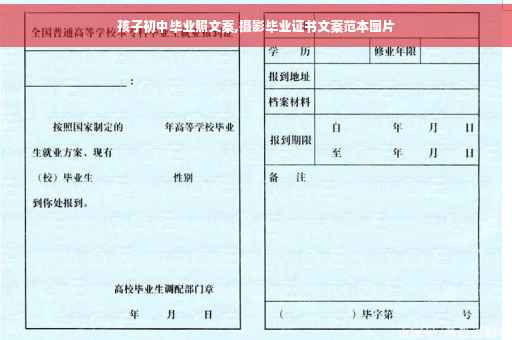 1. 孩子初中毕业照需要一份简短的文案,比如:“岁月如梭,学业有成,初中生涯告一段落,愿你乘风破浪,再创佳绩。