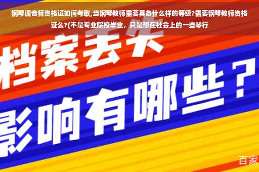 一般不需要。钢琴没有教师资格证一说,除非你想要参加那种专业职级的评定的才有。一般都是师范类的院校那种中学教师资格证。 钢琴教师至少也是本科专业吧。其实你到琴行去看一看,大部分都是本科毕业,少部分是专科毕业但也是在教学上摸爬滚打了好几年有一定经验的。