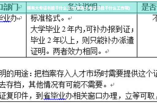 到此,以上就是小编对于拥有大专证书能干什么工作的问题就介绍到这了,希望介绍关于拥有大专证书能干什么工作的1点解答对大家有用。