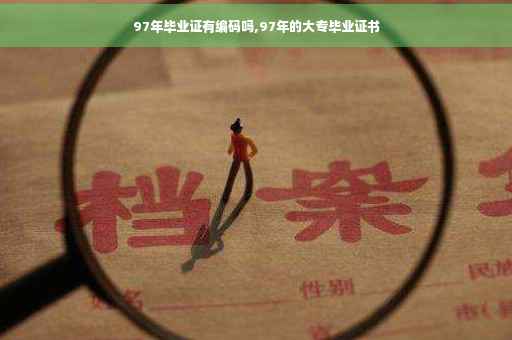 在我国,所发放的具有法律效力的证书均有编号,尤其是毕业证书。97年毕业证书同样有编码,其编码数字有年限、学校代码、专业代码、学号等几组数字组成。院校规模较小的,其毕业证编码也由年限、学籍号(含学校代码、班级序号、学号构成的)组成的。如学籍号为1101(校码)03(班级号)18(学号)的毕业证编号为9711010318。
