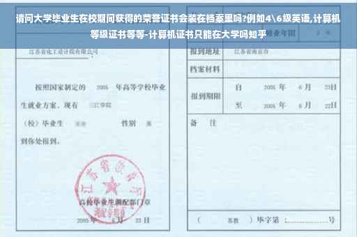 大学毕业生在校期间获得的荣誉证书会,例如4\6级英语,计算机等级证书等等.这些东东是国家认证的,当然会有记录的,当然不是把证书放在里面,放不下,但是里面有你的记录:如XX年,XX以XX分通过了国家英语四级等.