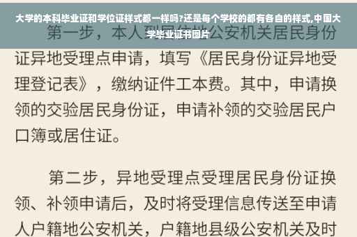 大学的本科毕业证和学位证样式都不一样,每个学校的都有各自的样式,但是大学本科毕业证在学信网上都能查到,学位证书在学位网上也能查到,这个是一定的,本科毕业证和学位证的样式都是根据自己学校的风格不同不同印制的,一般都印上自己学校的校训。