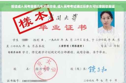 首先成人高考考试通过后还要学习2年半才能拿毕业证书。全部课程考试合格准予颁发全国统一毕业证。