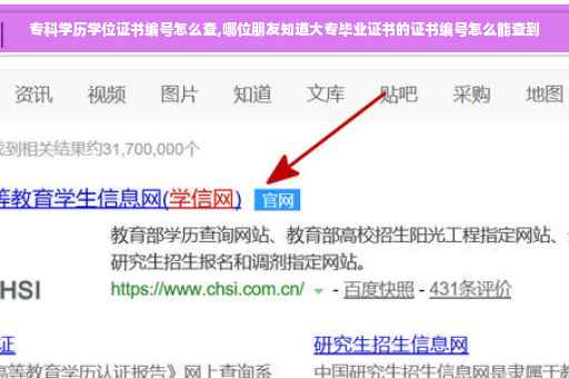 学历证书可以在学信网上面查得到。学信网是唯一官方查询验证学历的网站,不管是专科学历还是本科学历或者其他学历,证书编号都可以在学信网上面查询。