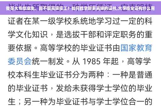 所以说大专毕业生和高级技工的学历是同等的,只是属于不同的国家部门管理。至于怎样拿到更高的证书,需要根据你的实际情况和职业规划,找到适合自己和需要的证书,实现自身价值的提高,希望能够帮到你。