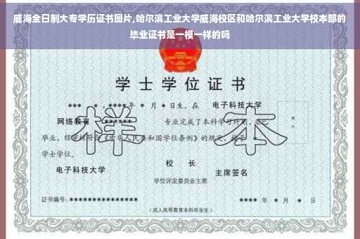 哈尔滨工业大学威海校区的毕业证书与哈工大的毕业证书是一样的。