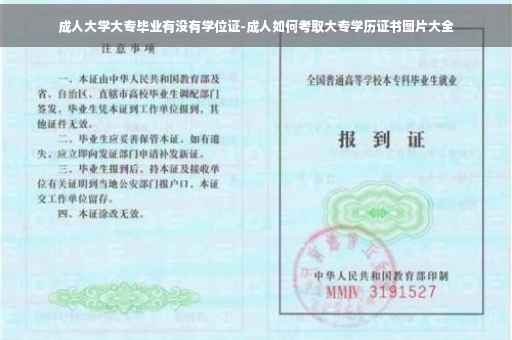 成人大学大专毕业没有学位证,只有毕业证。所有的大专毕业都是只有毕业证而没有学位证的。大学专科教育主要有两种形式:高职(高等职业学院)、高专(高等专科学校)即普通高等学校里就读专科专业的学生,毕业即获得大学专科学历。