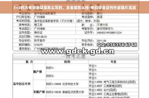 3+2大专是中专学校开设的一种班,就是初中毕业生在中专报名读五年书就可以直接拿大专毕业证了,其实是成人高考大专毕业证,只有通过对口高职进入的大专才是全日制,所以3+2的大专毕业证是成人高考大专毕业证,含金量不如全日制。