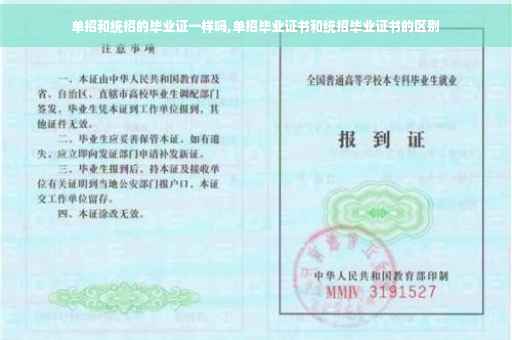 一样,单招和统招的学生的毕业证是一样的,只要学的是统一专业,同等教育水平,毕业时间一致的情况下,毕业证是一样的,因为单招和统招只是学校的招生方式有所不同,但学生的学习,住宿和教学环境是一样的,毕业证当然也一样