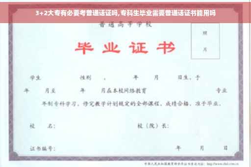 不管是3+2的大专还是正常专科本科都是需要考取普通话证的。普通话证在对于我们以后出入社会找工作是非常的方便。现在许多工作都需要普通话证。但是普通话证也是有等级的。如果当教师需要考取普通话证二级乙等。播音员以及主持人是需要一级甲等的。