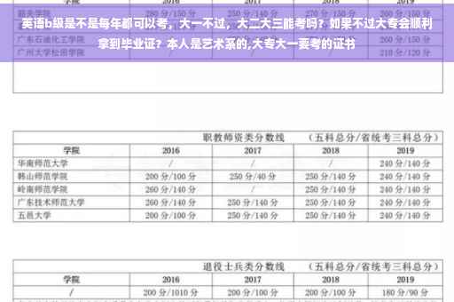 英语B级同英语四六级一样,每年有两次考试机会,当然一次不过,下一次接着考,直到考出为止,及格分为60分,另外呢,英语B级要是考不出,大专是不可以毕业的,就如同英语四级不过,本科不可以毕业一样