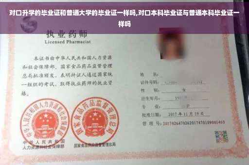 根据国家教育部规定,通过对口高考升入大学后毕业时的毕业证与统考的毕业证是一模一样的,对口升学是国家从高校招生方案中挑选有些专业,拿出专门方针,对期望持续进修的职校生进行对口专业的高考。对口升学方案是归于当年高考方案的一部分,对口升学的学生大学毕业后和同年经过普通高考进入大学进修的学生享用同等待遇。所以不用担心毕业证不一样,毕业证会被区别对待的问题。