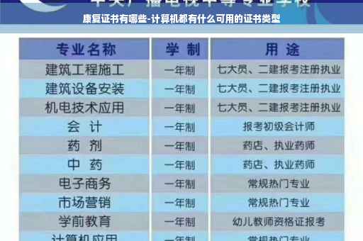 职业康复师证书是职业康复师的专业资质证书,康复技能证书是针对康复技能培训和评估的证书,康复援助证书是康复援助人员的职业资格认证证书,康复护工证书是针对康复护工的职业技能培训和认证证书。
