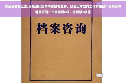 六是从事教学研究。 考证,英语六级、计算机二级是必要的,尤其外语等级分数越高越好。其它专业证书,并不太重要,近年国贸岗位对证书并没有要求,做外贸外销员、跟单员、报关员、外贸会计等证书也可考虑考一下。如果将来打算进入金融机构就业,可考银行从业资格、证券从业资格、基金从业资格。