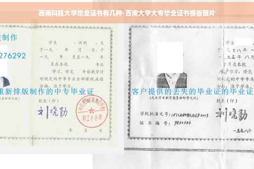 三种。西南科技大学的毕业证书含金量非常高,西南科技大学(Southwest University of Science and Technology)简称“西南科大”,坐落于中国科技城-四川省绵阳市,由教育部、国家国防科技工业局和四川省人民政府共建,是西部重点建设十四所高校之一,是四川省全面创新改革试验定点联系高校之一,入选国家“中西部高校基础能力建设工程”、四川省“双一流”建设计划、教育部卓越工程师教育培养计划、“双万计划”、国家级大学生创新创业训练计划、国家级新工科研究与实践项目、四川省卓越法律人才教育培养计划、四川省卓越农林人才教育培养计划、四川2011计划。