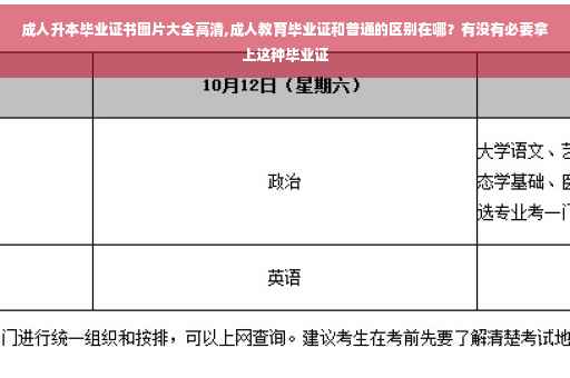 总之,成人教育毕业证和普通高校毕业证是有很大区别的。但也有很多相同点。如果手中只有高中或者中专学历。那么也是很有必要拿上成人教育学历的,起码来说不要让自己落后太多。
