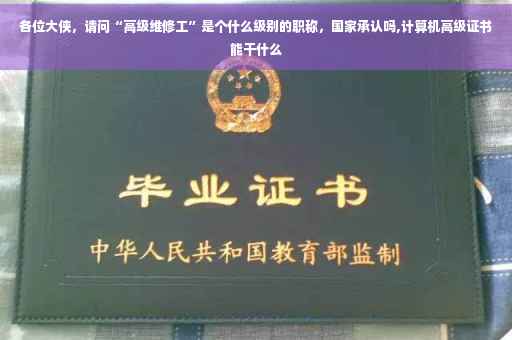 这个不属于职称 是职业技能等级证书,有计算机维修工 制冷设备维修工 汽车维修工等,国家分别制订了相应的考核标准,初级(五级)、中级(四级)、高级(三级)、技师(二级)、高级技师(二级),你说的高级维修工就是这个三级。一般现在找工作的话,最低要求都是中级、高级了。对具备这类技能证书的技工人员有相应的补贴标准、