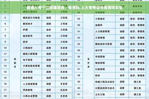 大家好,关于上大专考证书有用吗女生的问题,于是小编就整理了2个相关介绍上大专考证书有用吗女生的解答,让我们一起看看吧。