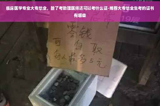 临床医学专业大专毕业,一般都是考助理医师证,然后做相关的工作后在考医师资格证; 据《中华人民共和国执业医师法》及有关规定具有下列条件之一的,可以参加医师资格考试: (一)具有高等学校医学专业本科以上学历,在执业医师指导下,在医疗、预防、保健机构中试用期满一年的; (二)取得执业助理医师执业证书后,具有高等学校医学专科学历,在医疗、预防、保健机构中工作满二年;具有中等专业学校医学专业学历,在医疗、预防、保健机构中工作满五年的。 (三)具有高等学校医学专科学历或者中等专业学校医学专业学历,在执业医师指导下,在医疗、预防、保健机构中试用期满一年的,可以参加执业助理医师资格考试。 以师承方式学习传统医学满三年或者经多年实践医术确有专长的,经县级以上人民政府卫生行政部门确定的传统医学专业组织或者医疗、预防、保健机构考核合格并推荐,可以参加执业医师资格或者执业助理医师资格考试。考试的内容和办法由国务院卫生行政部门另行制定。