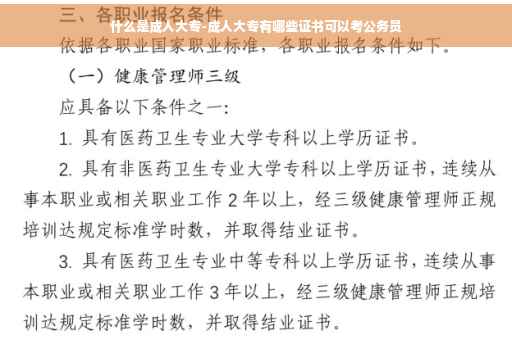大家好,关于成人大专有哪些证书可以考的问题,于是小编就整理了5个相关介绍成人大专有哪些证书可以考的解答,让我们一起看看吧。