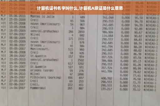 计算机A级证就是计算机一级证书的意思; 全国计算机等级考试是社会考试,就考试性质而言,它是一种重视应试人员对计算机和软件的实际运用能力的考试。考试分为四个等级,不同等级的内容不同,一级主要考核微型计算机基础知识和使用办公软件及因特网(Internet)的基本技能。 一级分为DOS版和Windows版,考核应试者计算机基本知识和使用微机系统的初步能力。