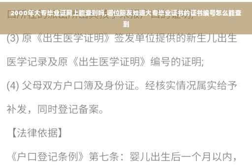 2000年大学本科毕业的,可以在学信网上查到。 如果是1991年之后的全日制的大学毕业证应该就能从学信网查到。其中,研究生、普通本和专科的学历证书可在线即时电注册
