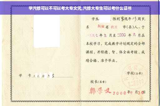 答,学汽修专业是可以去考大专文凭,没有那一条规定学汽修不能考,要考大专文凭是必须参加全国高考,达到录取线就可以进校学习,学完各科目即可毕业,领取毕业证书,证明有了大专文化程度。为了提升自己高度,还可以继续上本科及研究生,但这都是要经过考试才行。