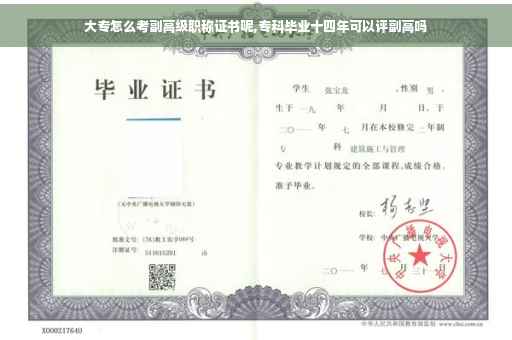 专科毕业十四年是没有资格评副高职称的。为了说明这个问题,举一个例子。工程师晋升高级工程师的基本条件是:全日制大学工科专业本科毕业及以上学历,取得工程师职称五年以上,并一直从事本专业技术工作,在省部级刊物上公开发表科技论文两篇以上,或获得省部级科技二等奖以上。所以,大专学历是没有资格评副高职称的。