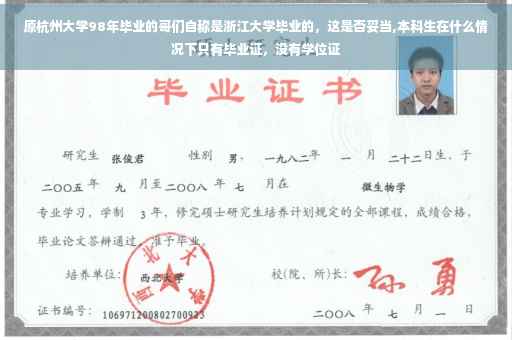 平常说说都无所谓啦,正式场合(比如重新换单位找工作)肯定是不行的,因为需要查验毕业证书的呀,他只有杭州大学的毕业证书,拿不出浙江大学的毕业证的。