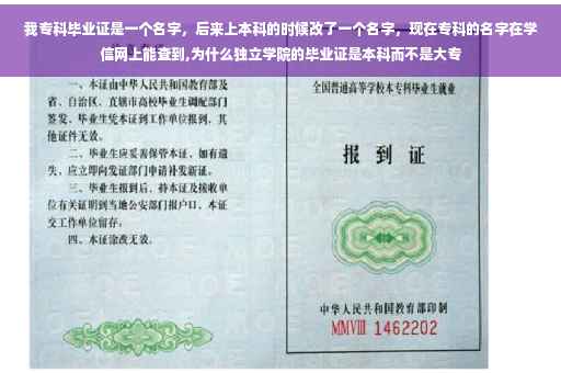 目前独立学院只能颁发独立学院毕业文凭,不能颁发校本部毕业证书。其发放的本、专科毕业证书上均须署名独立学院学校全称,例如×××大学××学院(分校)毕业证书上的署名即为“×××大学××学院(分校)”。
