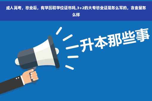 3+2的大专毕业证是成人高考大专毕业证,含金量不如全日制。